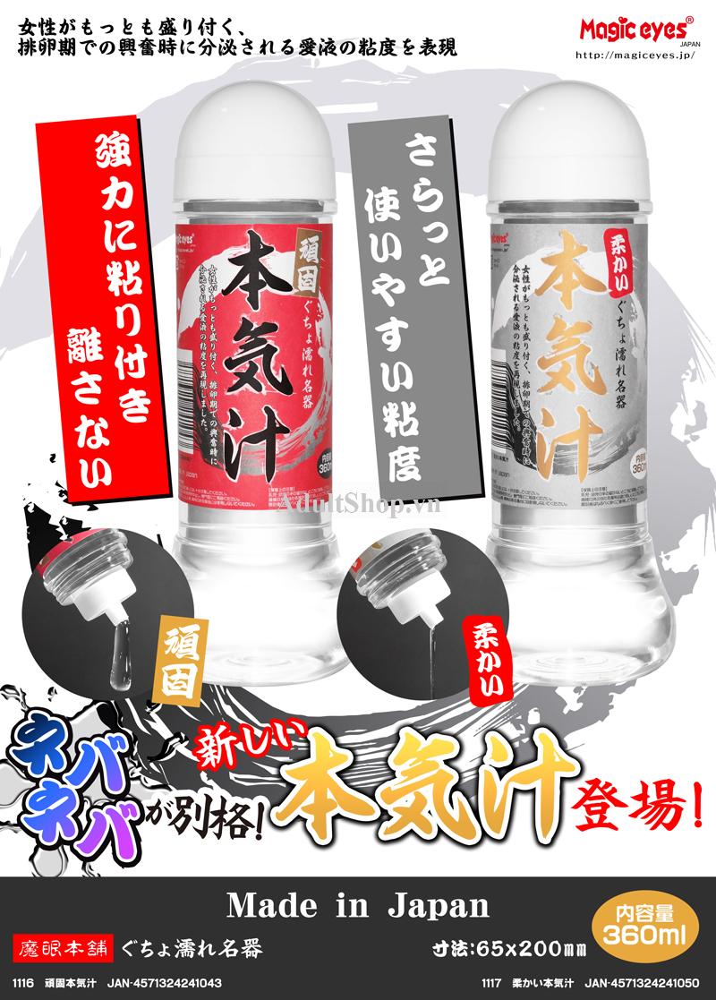 Dung tích lớn 360ml giúp tiết kiệm và sử dụng lâu dài. Với độ dính “cứng đầu” đặc trưng, Magic Eyes Honki Jiru Ganko là lựa chọn lý tưởng cho những ai yêu thích gel bôi trơn Nhật Bản siêu dày, chân thực và mạnh mẽ.