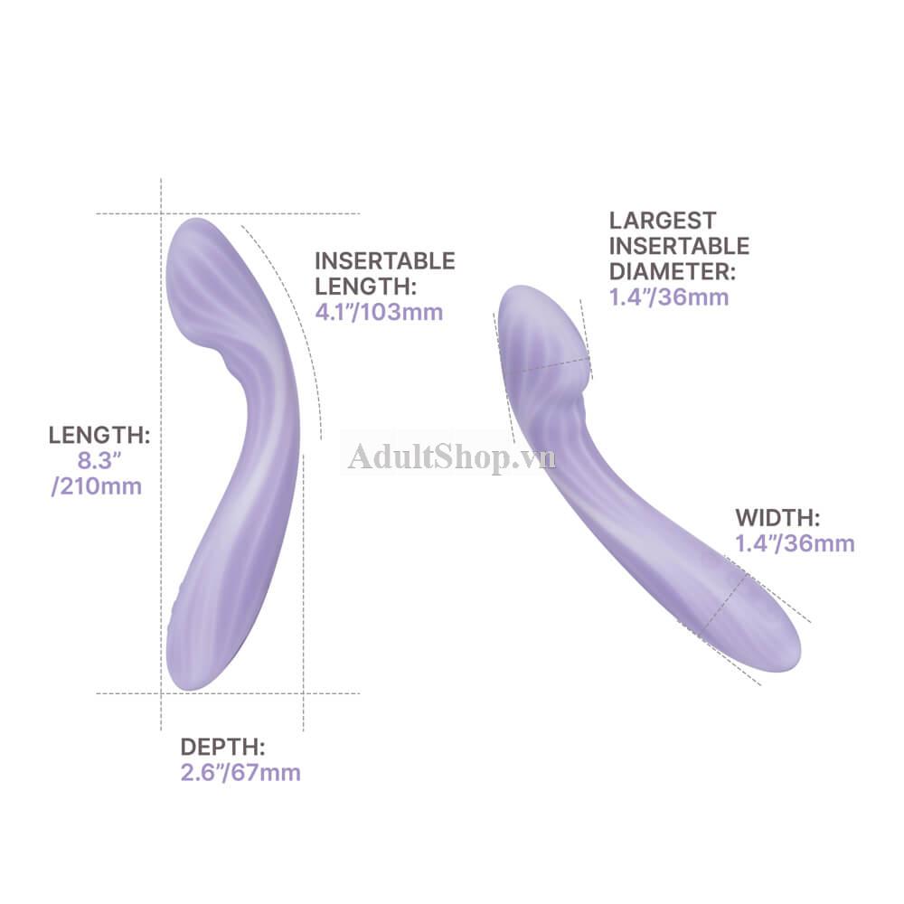 Thiết bị sở hữu thiết kế công thái học hiện đại với thân silicone hai lớp mềm mại, an toàn cho cơ thể, mang lại cảm giác êm ái và chân thực khi sử dụng. Đầu máy được thiết kế góc nghiêng chuẩn xác giúp tiếp cận điểm G hiệu quả, trong khi phần cổ linh hoạt ôm sát cơ thể, hỗ trợ kích thích đồng thời tại vùng âm vật và lối vào âm đạo. Sự kết hợp này tạo nên trải nghiệm kích thích bao phủ, liền mạch và có chiều sâu.